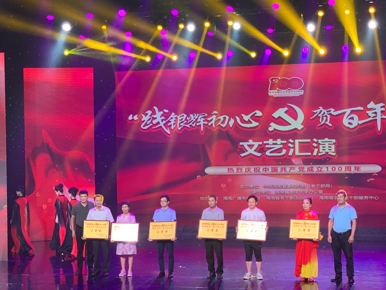 2021年6月11日,在海南省委组织部(老干部局)主办的“践银辉初心 贺百年华诞”文艺汇演中,由我校老同志编排参演的原创舞蹈《流淌的岁月》喜获三等奖(排名第一)的好成绩。本次活动共有来自全省21个单位共400多位演员参赛,节目类型包含舞蹈、合唱、琼剧、情景剧、独奏等,最终评出一等奖1名,二等奖3名,三等奖6名。