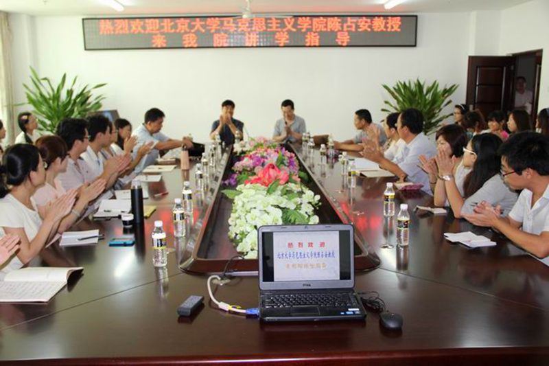 9月21日下午,中央马克思主义理论工程课题组首席专家、国务院学位委员会马克思主义理论学科评议组召集人、教肓部社会科学委员会学部召集人、教育部思政课教学指导委员会副主任委员、北京大学马克思主义学院原院长陈占安教授来我院讲学并指导工作。李德芳院长、院教学指导委员会成员、部分教师以及全体在校研究生参加了报告会。校党委陈封椿副书记在会后与陈占安教授进行了座谈。