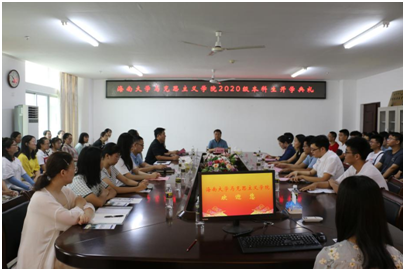 张云阁院长代表学院对全体新生的到来表示热烈欢迎和衷心祝贺。他强调,学院全体2020级新生应树立起对海南自贸港的荣誉感、对成为海南大学学生的荣誉感、对学院和思想政治教育专业的荣誉感,倍加珍惜并充分把握好到海南大学学习深造的宝贵机会。他介绍了学院在人才培养、学科建设、科学研究、社会服务等方面的基本情况,勉励新生树立远大人生理想、增强社会责任感,热爱专业、刻苦学习、打牢基础、做好大学四年的学习和生活规划,使在海南大学马克思主义学院的学习经历成为今后个人成长发展的强大动力。他强调,马克思主义学院将为全体学生的成长成才提供最优质的服务和最可靠的保障,希望同学们尽快转变角色,适应大学生活,不断拼搏奋进,早日成长为担当民族复兴大任的时代新人。