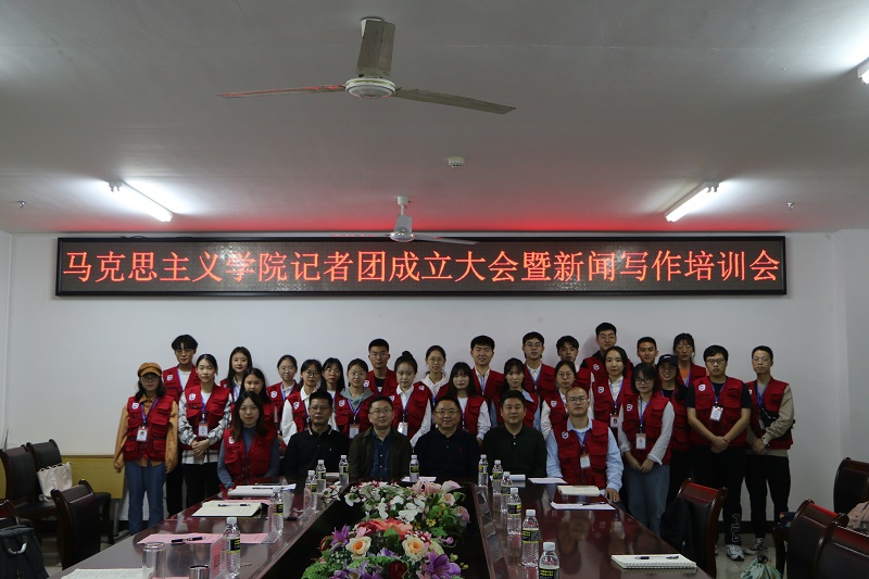 为进一步完善学院三全育人体系,促进专业与实践融合,进一步拓展马学科学生的实践平台,积极在新闻媒体上发出青年马克思主义者正能量的声音,海南大学马克思主义学院组织成立大学生记者团。11月15日上午,马克思主义学院记者团成立大会暨新闻写作培训会在社科楼A-311室顺利召开。《海南日报》政文部副主任、主任记者彭青林,院党委书记段捷频,院党委副书记张井富,记者团指导老师张君成出席,记者团全体成员参加会议。会议由张井富主持。