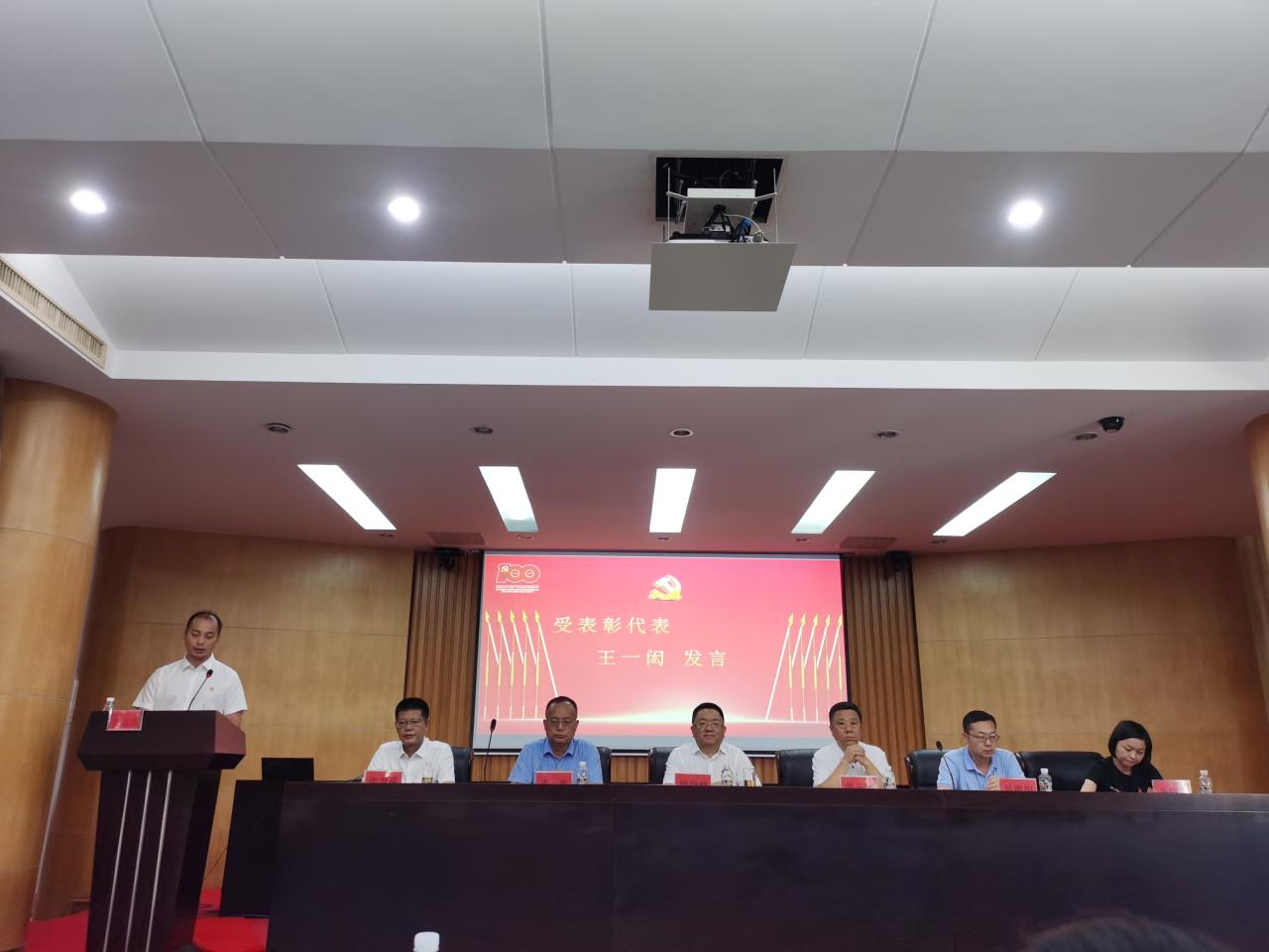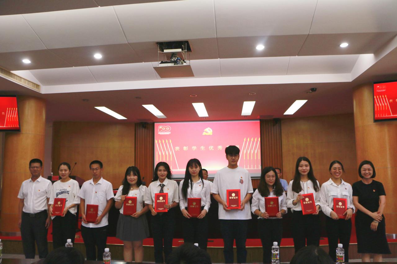 大会在雄壮的国歌声中拉开帷幕。面对庄严的党旗,全体起立,由王善领誓,重温入党誓词,进一步强化了党员意识,坚定理想信念,牢记初心使命。吴朝阳通报了获得校级和省教育厅党委荣誉称号的先进集体和优秀个人,宣读学院党委“七一”表彰文件,大会隆重表彰了获得学院先进党支部、优秀党务工作者、优秀党员的集体和个人。