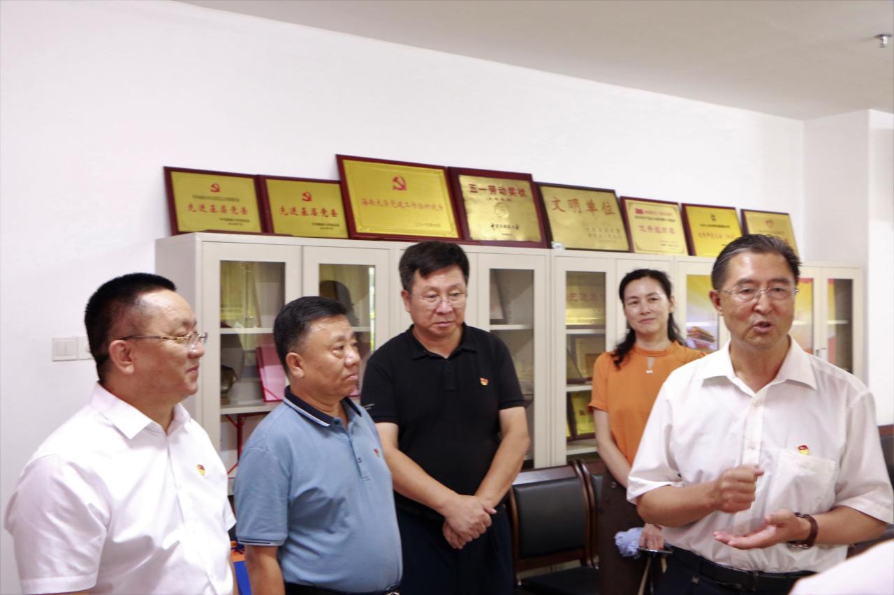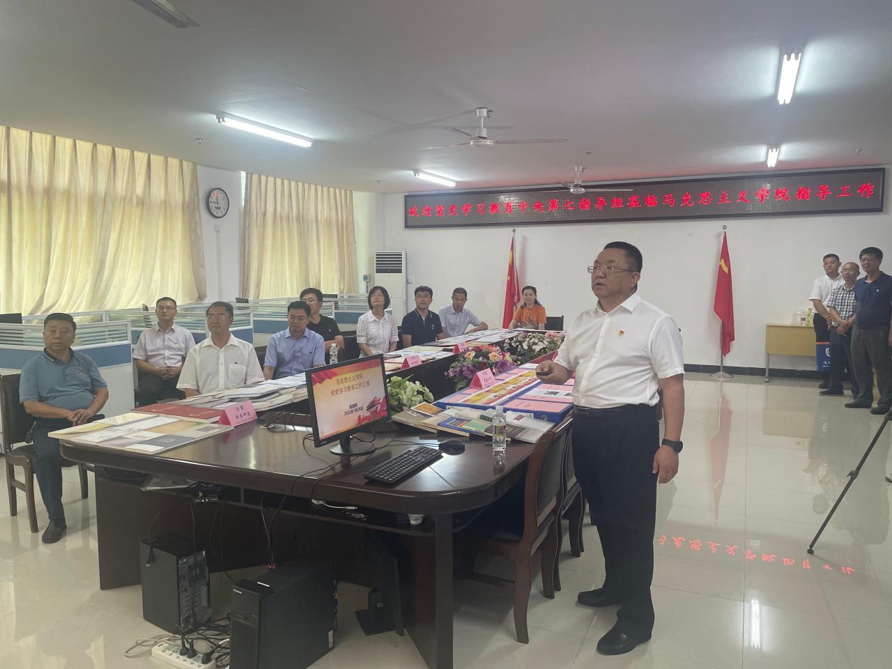 7月28日上午,中央党史学习教育第七指导组组长程振山一行到海南大学马克思主义学院调研指导党史学习教育工作。省委宣传部、省教育厅、校党委相关领导陪同,学院党委书记段捷频主汇报,院长张云阁和其他领导班子成员、教师代表参加汇报。