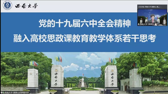 国务院学位委员会学科评议组马克思主义理论学科召集人、教育部思想政治理论课教学指导委员会咨询委员、西南大学原党委书记黄蓉生教授,中央马工程首席专家、华南师范大学马克思主义学院院长陈金龙教授应邀分别做了题为“党的十九届六中全会精神融入高校思政课开云app下载苹果 体系若干思考”“第三个历史决议的叙史方法”的主旨报告。