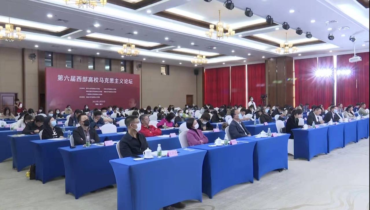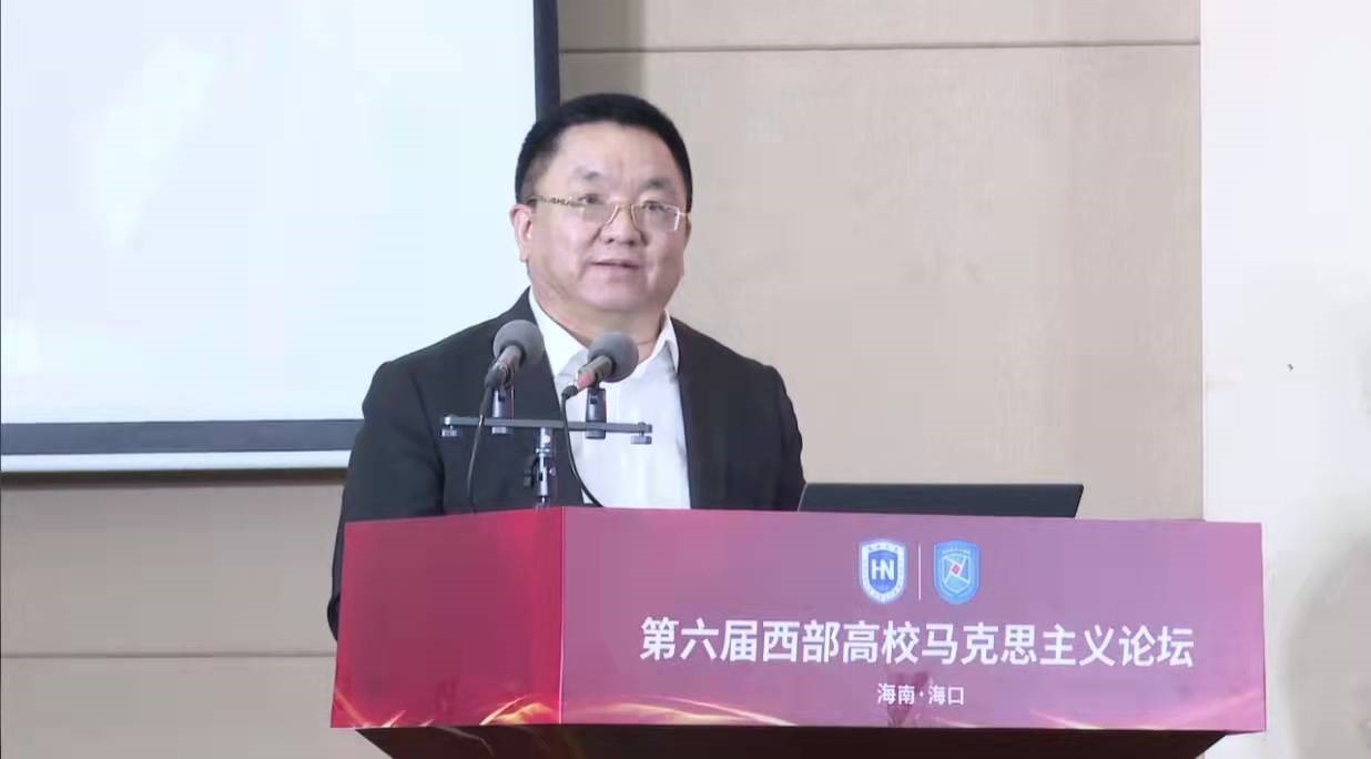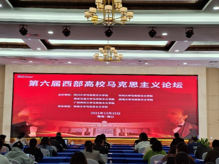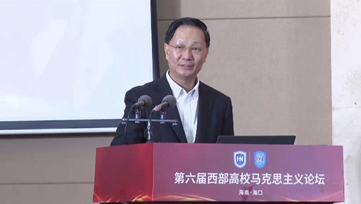 12月25日,第六届西部高校马克思主义论坛在海口举行。本次研讨会由四川大学、兰州大学、西安交通大学、西南大学、广西师范大学五所高校马克思主义学院主办,海南大学马克思主义学院承办。来自中共中央党校、山东大学、四川大学、兰州大学、西安交通大学、南京航空航天大学、西南大学、广西师范大学等高校及科研机构的三百余名学者以线上方式参会,来自海南各高校马克思主义学院的百余名师生以线下方式参会。同时,参与直播观看的观众超过4万人次。海南大学党委书记符宣国出席论坛并致辞,论坛开幕式由海南大学马克思主义学院院长张云阁教授主持。