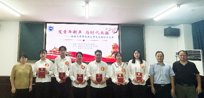 在“时事专家评”环节,评委代表曾繁诗就10位参赛选手的现场写作、演讲表现进行了深度点评,他对海南大学网评大赛活动和选手表现给予高度评价和充分肯定,并就网评写作与演讲与现场同学进行了深入交流,鼓励青年大学生关心政治、关心时事,积极参加社会实践,不断完善自我。