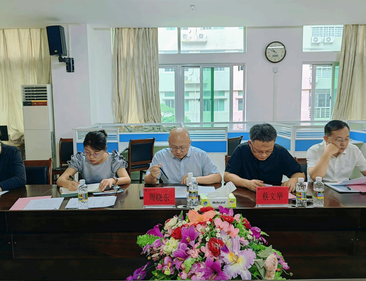 海南省教育厅党委办公室主任周晓东,海南省教育厅党委办四级调研员、海南大学马克思主义学院副教授蔡文举,海南大学马克思主义学院副院长(主持行政工作)杨娜、副院长吴朝阳,海南大学国际传播学院教师颜磊、李风逸以及部分马克思主义学院青年教师参加会议。