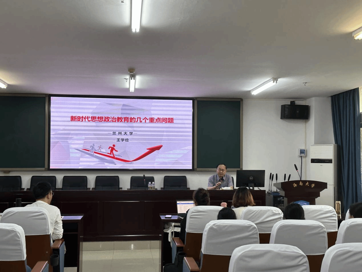 王学俭教授以生动的语言和丰富的案例,深入浅出地讲解了新时代思想政治教育的研究方法和最新成果,激发了同学们的学习兴趣,深化了对新时代思想政治教育的理解,受到了与会同学的一致好评。