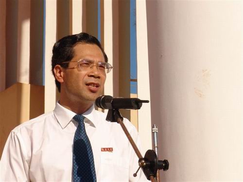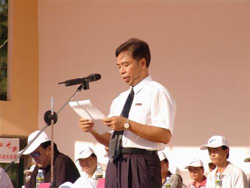 校长谭世贵教授在会上讲话。他首先代表全校师生员工对2004级新生以优异的成绩考入海南大学表示衷心的祝贺和热烈的欢迎,向承担我校军训的部队首长和全体官兵表示热烈的欢迎和衷心的感谢。他说,近年来,我校的生源质量不断提高,在绝大多数省份都以高出重点线的分数录取。今年我校招新生4000多人,这么多新鲜血液的注入,给海南大学带来了新的生机,也增强了全校教职员工为培育优秀人才而不断探索的决心。海南大学作为海南省唯一一所综合性大学,经过21年的发展,由小到大、由弱到强,学校面貌大为改观,各项事业取得长足进步,已被海南省政府确认为海南省省属重点大学,并将在政策、经费等方面给予支持和帮助。目前,为迎接教育部的本科教学水平评估,学校正在大规模进行教学基础建设。最后,谭校长对2004级新生的大学生活提出了几点要求:一是志存高远,奋发向上;二是刻苦学习、勤于思考;三是勇于实践、开拓创新;四是团结互助、共同进步;五是锻炼身体、永葆青春。他相信,在全校师生的共同努力下,海南大学的明天一定会更加美好。