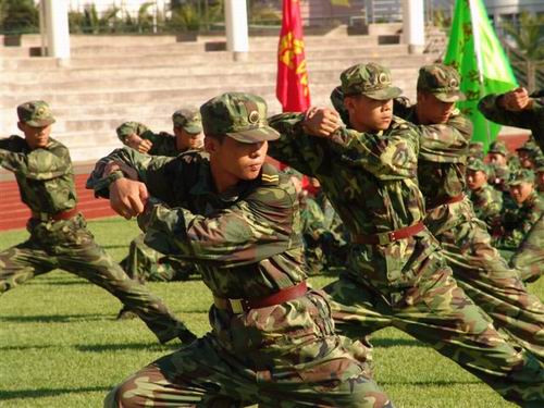 海口警备区纠察连为广大师生官兵表演了队列、旗语、盾牌操等精彩的科目。最后,大会在全体新生齐声合唱的军人道德组歌《爱国奉献歌》的嘹亮歌声中结束。