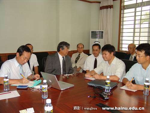 9月3日上午,以日本大学生物资源科学部学部长佐佐木惠彦教授(Mr. Satohiko Sasaki)为团长、桑村和朝教授(Mr. Kuwamura kazutomo)为顾问的日本大学代表团一行6人应邀来校访问。副校长符华儿研究员热情接待了来宾并与代表团成员进行座谈,详细介绍了我校对外学术交流和合作办学简况。佐佐木惠彦学部长对我校的热情接待表示感谢,同时表明,代表团此行的目的是希望与我校生命科学与农学院在酸性硫酸盐土壤研究方面开展合作研究。日本教育部在日本几百所高校中筛选了30所大学专门研究重大课题,日本大学是其中之一。酸性硫酸盐土壤是日本教育部的重点研究项目之一,因其对改良环境有重要意义,而海南岛有很好的土壤样本,如两校合作成功,将得到日本教育部在资金方面的大力支持。随后,代表团一行与生命科学与农学院的专家学者进行了座谈,副院长吴蔚东教授对海南地区酸性硫酸盐土壤及当地植被的分布情况作了详细的介绍。