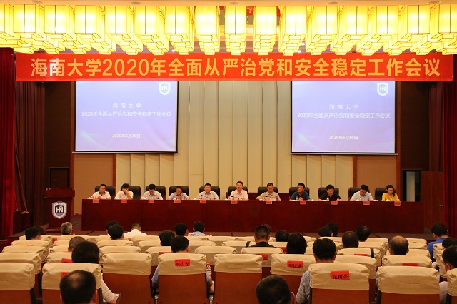 本站讯(记者/摄影 潘锭钰)5月19日下午,海南大学在社科楼二楼报告厅召开2020年全面从严治党和安全稳定工作会议,深入学习贯彻落实习近平总书记在十九届中央纪委四次全会上的重要讲话和全会精神,全国、全省安全生产工作会议精神,省纪委七届四次全会精神和全省教育系统2020年全面从严治党和安全稳定工作会议精神,认真落实《党委(党组)落实全面从严治党主体责任规定》文件精神,总结研判学校全面从严治党和安全稳定的工作形势,部署安排学校全面从严治党和安全稳定重点任务。校党委书记武耀廷,校长骆清铭,省监察委员会驻海南大学监察专员、纪委书记郑尉杰,副校长胡新文、王崇敏、梁谋、叶光亮、曹宪忠、范文,党委常委、组织部部长韩淑梅,党委常委、统战部部长陈明宝出席会议。王崇敏主持会议。