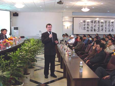 芬兰奥鲁大学校长罗里.拉尤南先生向我校师生作演讲