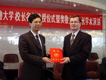 谭世贵校长向奥鲁大学校长罗里.拉尤南先生颁发名誉教授聘书