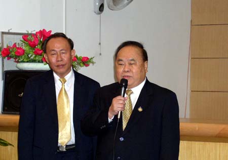 今天下午,泰国海南会馆理事长欧宗清博士率访问团一行来到我校进行访问,并参观了他出巨资投资建设的我校图书馆。