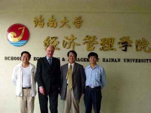 华大伟教授与经济学院院长黄景贵博士、副院长李仁君博士以及中国五矿化工进出口商会副会长周世俭教授合影