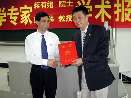 谭世贵校长向蒋有绪院士颁发兼职教授聘书