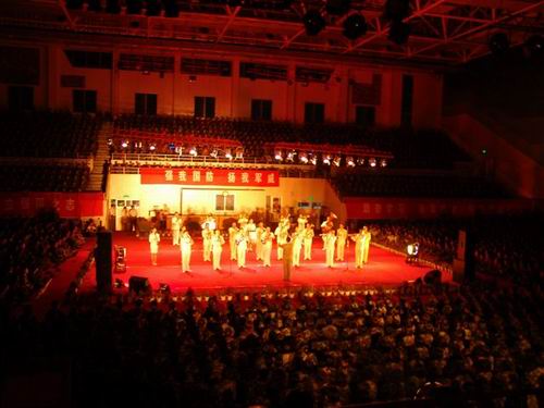 9月14日晚上,海口警备区文工团到我校慰问演出,演出在我校联谊馆举行。出席演出的领导有海口警备区司令员符永健大校、政委张文瑞大校、我校副校长符华儿研究员。参加军训全体官兵、2004级新生共4000多人观看了演出。