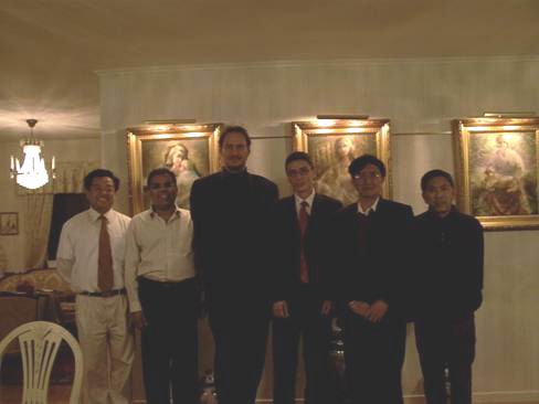 与卡尔斯达特大学常务副校长S·Hwang(右三)在J·A·卡鲁博士(左二)的家宴上