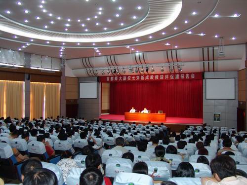 首都师范大学在上次的本科教学工作水平评估中以第二名的成绩被评为优秀,这次报告会我校特地请该校副校长刘新成教授到我校传经送宝。在报告会上,刘新成教授首先从三个方面论述了迎评促建对学校作用:明确教学和办学的基本思路;加大政府对学校的经费投入力度;明确教学的中心地位。接着,刘新成教授介绍了首都师大迎评促建的经验:校领导的高度重视;开展自评自建;建立数字迎评体系;成立一个非常精干的评估评建工作领导小组。刘教授的报告使我校师生员工深受启发,他精彩而幽默的讲话赢得满场阵阵掌声。