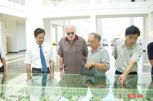 托马斯.伍德博士(左二)正在参观我校校园规划模型
