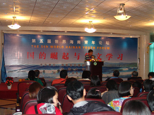 随后,各国营员代表们就 "中国的崛起和华文学习" 为主题进行了一系列演讲,大家畅所欲言,通过这些天的所见所闻,抒发了自己对故乡海南、对历史悠久、博大精深的中华传统文化的热爱,道出了世界海南华裔之间血脉相通,根系一家的真诚感悟。本次论坛由我校营员代表张尧、泰国营员代表刘杨琴美主持。