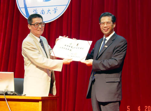谭世贵校长向梁慧星讲座教授颁发聘书