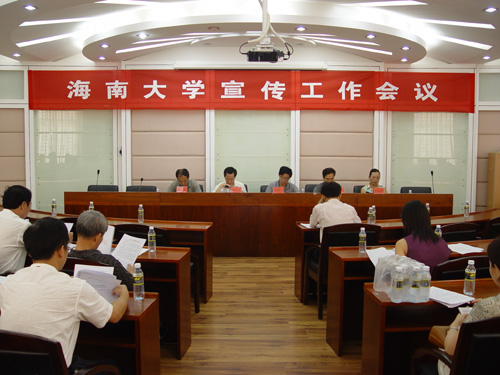 2005年7月7日上午,海南大学宣传工作会议在我校行政楼一楼报告厅隆重举行。出席大会的领导有校党委书记赵康太、副校长严庆、党办主任范明、宣传部副部长王志芳。各学院负责人、各党总支书记、各学院办公室主任、学工办主任和机关各部门、图书馆、后勤服务集团的负责人参加了会议,省委宣传部理论处副处长李星良也应邀出席。会议由严庆副校长主持。