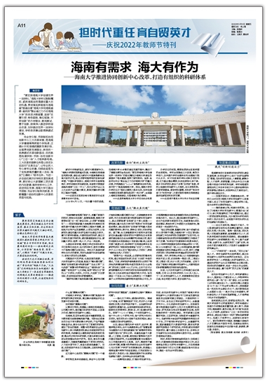 喜迎二十大|《海南日报》:海南有需求 海大有作为 ——海南大学推进协同创新中心改革,打造有组织的科研体系