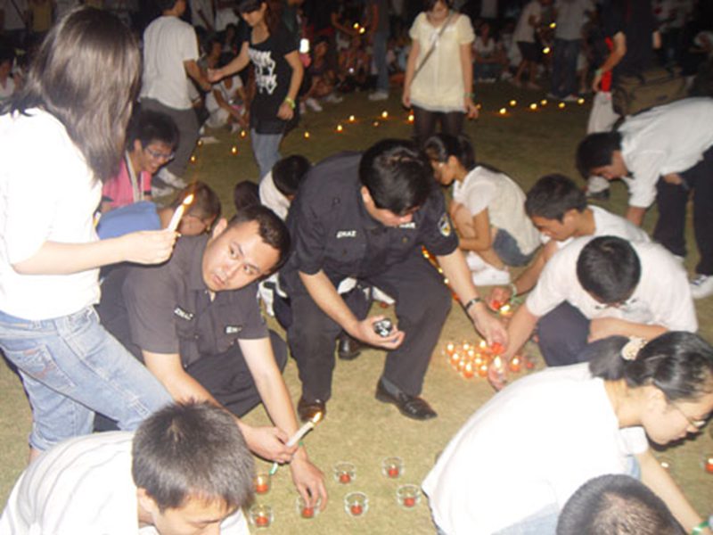 值汶川特大地震发生一周年之际,为深切缅怀遇难同胞,弘扬在抗震救灾中万众一心、众志成城的精神,感念、铭记和追忆这一年不平凡的历程,同时也让学生更加珍爱生命,珍惜时间,自立自强,奋发有为,我处在2009年5月12日出动近百名警力协助校学生会组织各项纪念活动。