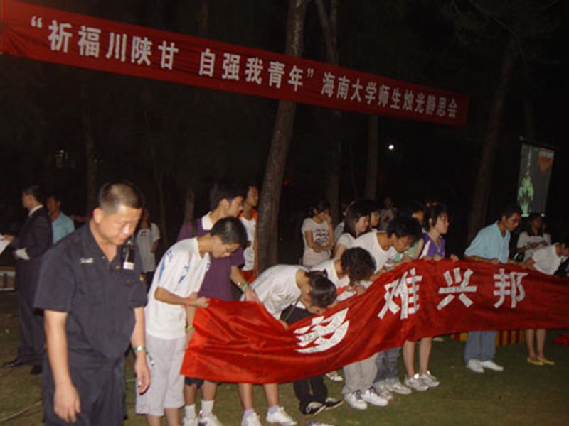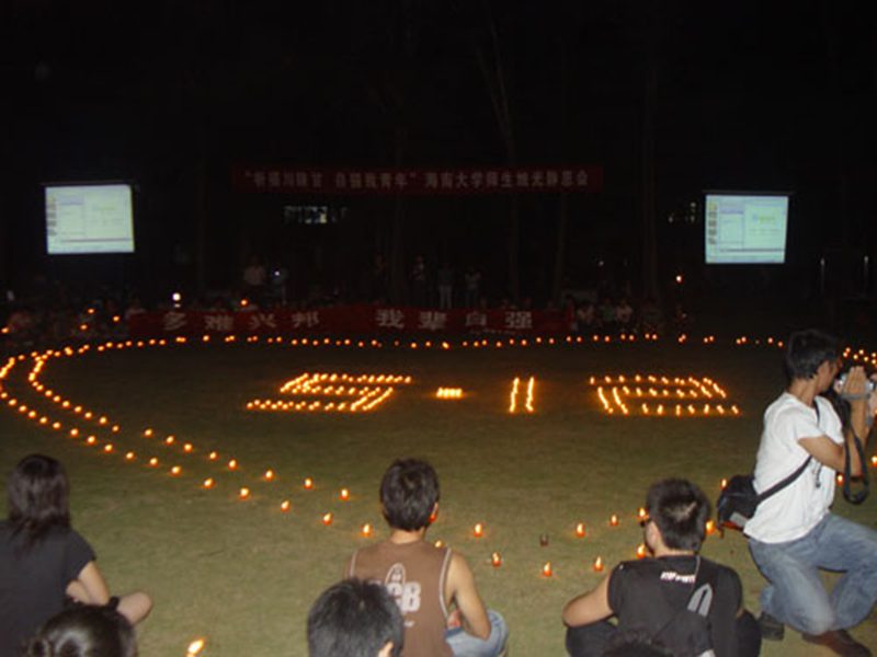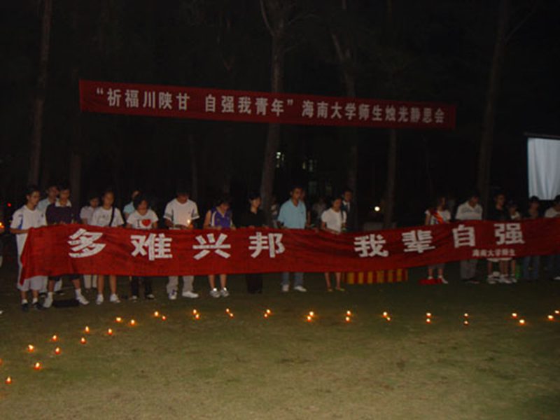 我处组织、参与的主要活动有一、发放绿丝带。从早上7点开始我处协助校学生会组织军事爱好者协会和四川籍的同学在海甸校区发放近2万条的绿丝带;二、协助军事爱好者协会和四川籍的同学12日中午14时28分在起点草坪默哀三分钟;三、协助校学生会12日晚10时在起点草坪举行“祈福川陕甘 自强我青年”海南大学万名师生烛光静思会。