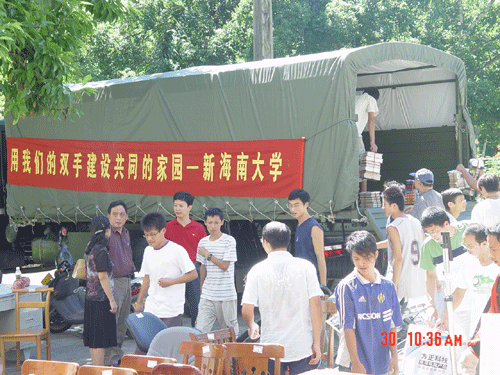 2007年8月30日下午4时30分,在警车的护送下,儋州校区第一次师生搬迁车队顺利到达海甸校区,长达1公里的车队进入海口市时一路绿灯,引起广大市民的关注。此次搬迁标志着两校合并工作进入一个新的阶段。