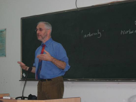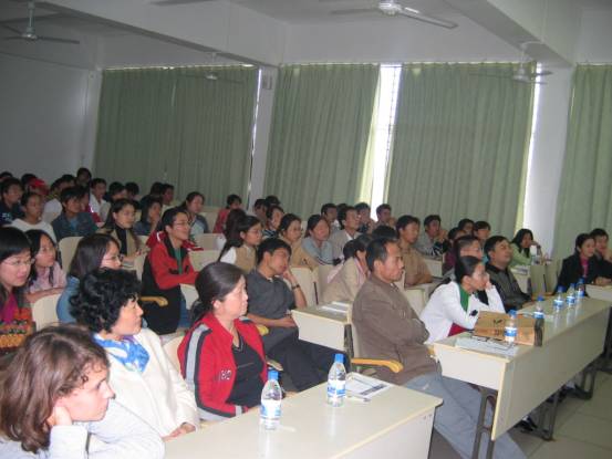 12月9日下午,海南大学外国语学院冬季学术活动的第二场讲座移地于3号教学楼405教室继续进行,讲座人依旧是香港中文大学比较文学系主任兼博士生导师Tambling教授。 在听取了昨天晚上的报告之后,外国语学院师生的兴致丝毫不逊于昨日,405教室依旧座无虚席。听众席上还可以看到头发花白的退休老教授的身影;昨天坐在门口地板上的那位白人女子这次提前来到了现场,我们了解到她是来自于斯洛文尼亚的留学生,名字叫贝蕾雅。我们见到她时,她正在和外语学院院长曹玲娟交流着对昨晚讲座的感想。 下午三点正,讲座如期举行,外国语学院副院长李渝凤博士主持了下午的讲座。在一阵阵热烈的掌声之后,Tambling教授开始了自己本次在海南大学的第二场讲座。 整个讲座持续了一个多小时,Tambling教授从西方人的视野出发,为广大听众阐述了中国大文豪鲁迅先生的《阿Q正传》、著名小说家钱钟书的《围城》和当代小说家莫言的《红高粱》中的叙述方式,并对中国典籍英译问题提出了自己的见解,同时也介绍了这些典籍英译本在国外的影响等方面的情况。然后,Tambling教授还回答了学生提出的有关全球化和美国化等方面的问题。 正如李渝凤博士在最后总结时所说的那样,Tambling教授的的确确给我们带来了一个富含文学、哲学和艺术学的文化大餐。我们真诚地希望,作为海南大学名誉教授的Tambling先生,能够经常回到海大来和我们的师生共享自己在学术方面的新成果。对此,我们相信,和外国语学院的全体师生一样,其他学院有兴趣的听众也在翘首以待。