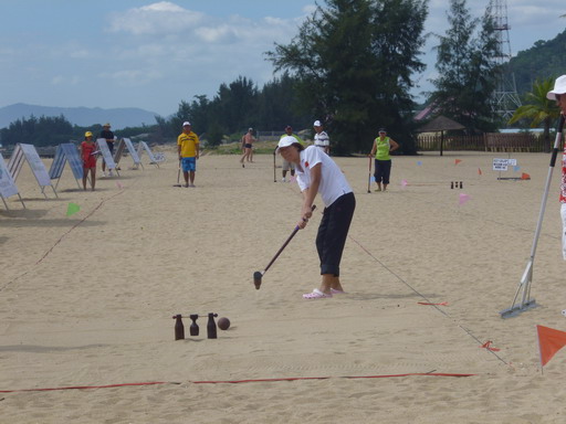 在酷热的三亚湾沙滩上,经过两天的激烈较量,我校男队员以绝对优势力压中华台北队获得男子团体冠军,取得历史性突破,也是十多年来我校木球队第一次战胜中华台北木球队;叶奇伟、雷栋、梁彬分别获得男子个人第一、第二和第六名。女队员仅以4杆之差获得团体亚军;李翻翻、王晓青、刘智慧、王婧分别获得第二、第三、第五和第六名。据悉,国家体育总局将根据本次比赛成绩,选拔出备战2012年第三届亚洲沙滩运动会的中国木球集训队全部队员。