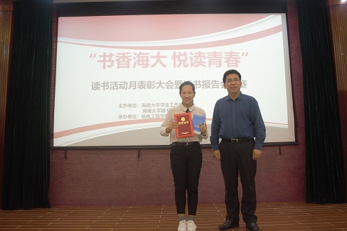 12月18日下午,由学生工作处(部)和图书馆联合举办,机电工程学院承办“书香海大 悦读青春”读书活动月表彰大会暨读书报告会决赛在图书馆五楼报告厅举行,学生工作处(部)处长陈卫东、图书馆馆长李文化、校团委副书记俞花美、机电工程学院党委副书记李宏,各学院负责读书活动月指导老师出席活动。//www.pwnwords.com