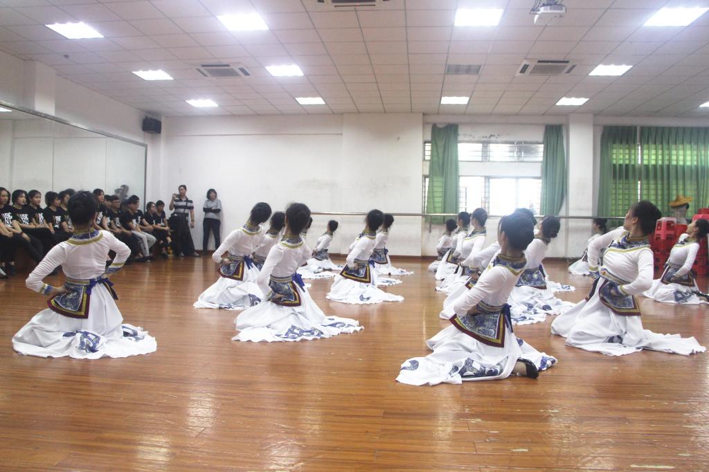 本次交流活动分为三个部分,首先,我院2018级舞蹈编导学生展示蒙古族舞蹈,我院舞蹈系副教授范莹对每一段舞蹈组合进行讲解;第二部分,在范莹老师的带领下,新加坡舞蹈团学生们学习蒙古族舞蹈基本动作,范老师讲述了蒙古族的草原文化习俗,以及由于不同的地域环境与人文习俗造就了蒙古族舞蹈动作的特殊性;第三部分,由新加坡华侨中学高中部舞蹈团同学们为我院师生表演了自己准备的舞蹈节目,展示了不同风格的舞蹈魅力与人文文化。